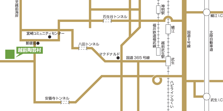 織田方面行き 陶芸村口 下車(所要時間 約30分)